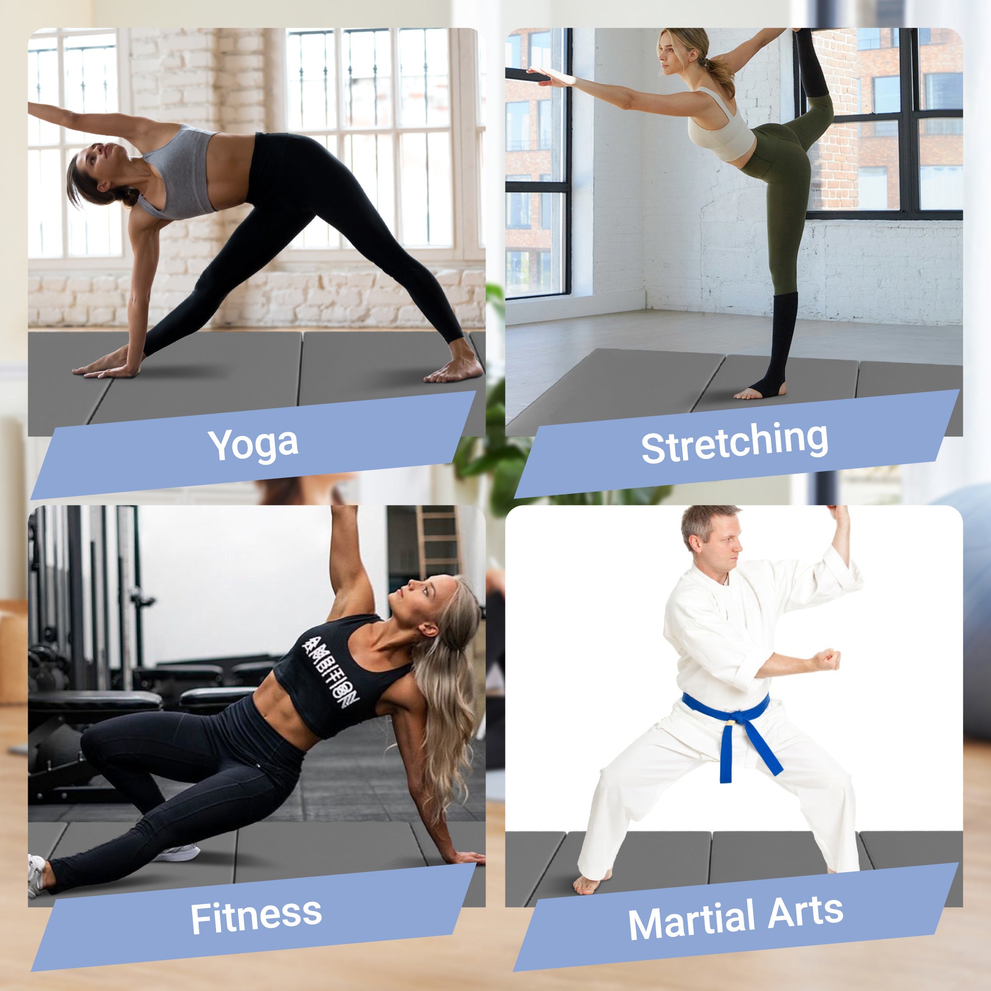 - Foldable 4-piece design and carrying handles on each mat make it easy to store and transport your mats.